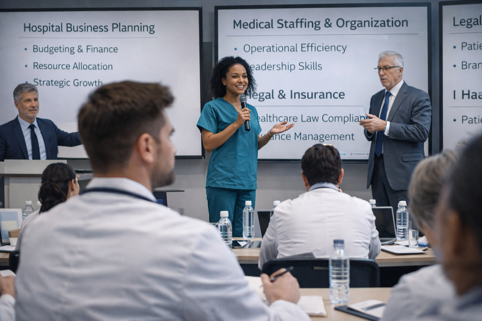 병원 비즈니스 설계, 인력 및 조직 운영, 마케팅 전략, 법률, 보험 등